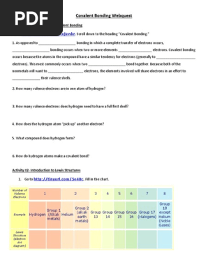 Covalent Bonding Webquest Pdf Covalent Bond Chemical Bond